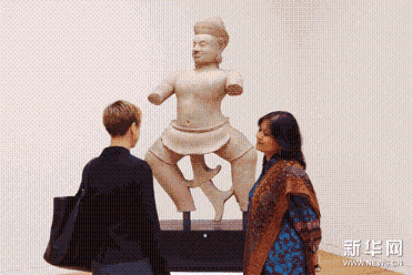 一個10世紀(jì)砂巖制的東南亞雕像在美國紐約蘇富比2011年亞洲藝術(shù)周拍賣預(yù)展上展出