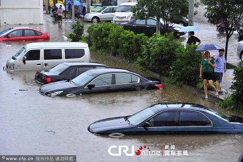 2011年6月28日,湖南省長沙市天心區(qū)書院路金盛布業(yè)市場淹沒在水中。當(dāng)天中午,長沙上空電閃雷鳴,如瀑大雨傾瀉而下,致使城區(qū)部分地段積水嚴(yán)重,交通陷入混亂狀態(tài)。