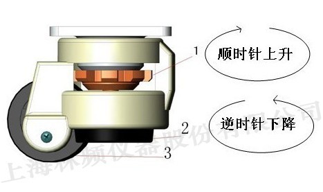 1、升降轉(zhuǎn)盤。 2、固定底座。 3、移動(dòng)滾輪。 A、移動(dòng)試驗(yàn)箱: 順時(shí)針方向旋轉(zhuǎn)升降轉(zhuǎn)盤,固定底座將往上移動(dòng),轉(zhuǎn)動(dòng)每個(gè)輪子的升降轉(zhuǎn)盤,使每個(gè)輪子的固定底座都離開地面,確保所有移動(dòng)滾輪著地,此時(shí)便可方便的移動(dòng)設(shè)備到所需位置。 B、固定試驗(yàn)箱:把箱體移動(dòng)到所需位置后,逆時(shí)針方向下調(diào)升降轉(zhuǎn)盤,將移動(dòng)滾輪升起,使固定底座與地面接觸,使箱體基本固定。此時(shí)再用水平儀測量箱體是否水平。可通過升降轉(zhuǎn)盤調(diào)節(jié)箱體各部分的高度,各部分升降轉(zhuǎn)盤調(diào)到適當(dāng)?shù)奈恢煤笸V剐D(zhuǎn),確保試驗(yàn)箱處于水平狀態(tài)時(shí)。