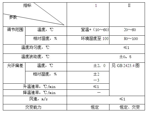 注:1)1類試驗(yàn)箱的升溫速率按每5 min的平均值計(jì)算。 2)在相關(guān)標(biāo)準(zhǔn)中,降溫階段的相對(duì)濕度分為,不小于95%和不小于85%這兩個(gè)參數(shù)點(diǎn)。 |