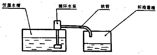 循環(huán)水泵流量試驗:按圖1所示的方法啟動水泵,測量1min內(nèi)所抽出的水量: