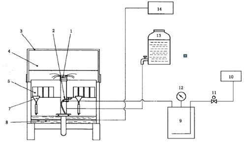 3-----試驗(yàn)箱蓋;       10-----空氣壓縮機(jī);  17-----廢水處理;