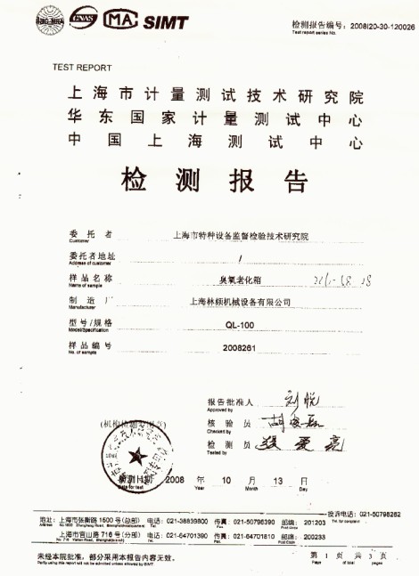 08年8月份,上海市特種設(shè)備監(jiān)督檢驗(yàn)技術(shù)研究院在經(jīng)過眾多篩選后選擇林頻,與我司正式簽約一臺型號為QL-100的臭氧老化試驗(yàn)箱,在出廠前嚴(yán)格把關(guān),并已通過上海計(jì)量院第三方檢測合格,現(xiàn)已驗(yàn)收合格并已成功交付使用.因?yàn)槲覀儗I(yè),所以值得信賴!